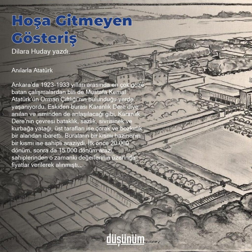 Dilara Huday ( Prof. Dr. Abdulgafur Acatay’dan) Ankara’da 1923-1933 yılları arasında en çok göze batan çalışmalardan biri de Mustafa Kemal Atatürk’ün Orman Çiftliği’nin bulunduğu yerde yaşanıyordu. Eskiden burası Karanlık Dere...