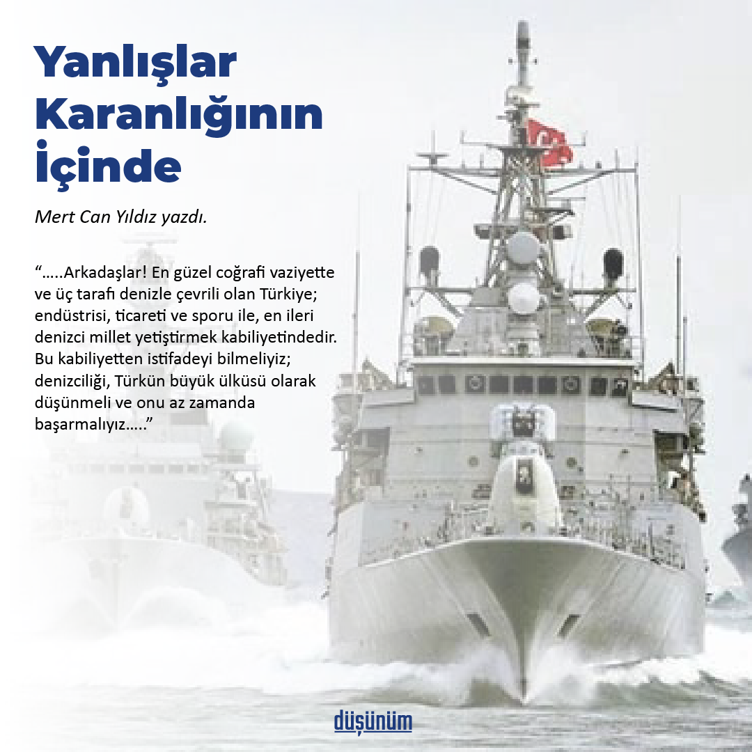 Bundan 3 yıl önce Bandırma On Yedi Eylül Üniversitesi Atatürkçü Düşünce Topluluğu’nun ev sahipliği yaptığı çalıştayda konuşmacı olan Deniz Mehmet Irak’ın söylediği şu söz aklımdan hiç çıkmamıştı: “Bir ülkenin deniz kuvvetleri ülkesinin hep bir adım önünde olmak zorundadır.” Bugün ise donanma bu ilke ışığında iradeli bir şeklide yüzüncü yıla adım adım ilerlemektedir. Yanlışlar karanlığının aydınlatan tek doğru kutup yıldızı gibi…